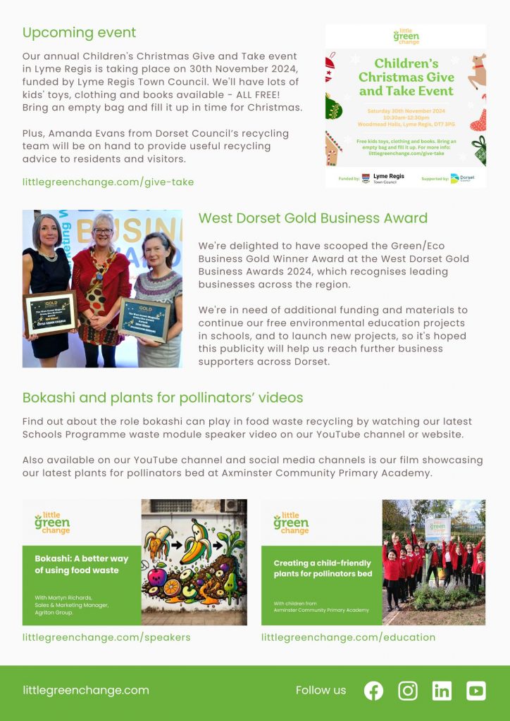 It was great to be interviewed by BBC Radio Devon again, this time by presenter Caroline Densley. Our Founder and Director Clare Matheson, who won the Green Award at the BBC Devon Make a Difference Awards in 2024, spoke about Little Green Change's activities since September, our current programmes and projects, and the benefits winning the award has had.