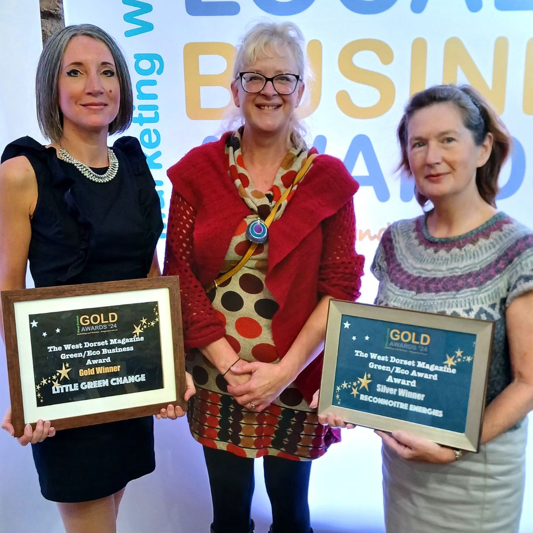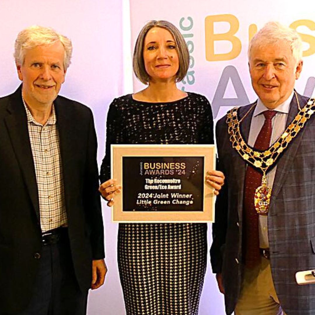 We're proud to have won the Green StartUp of the Year Award at the UK StartUp Awards 2025 South-West, the Green/Eco Business of the Year Award at the Jurassic Business Awards 2024, the Green/Eco Award at the West Dorset Gold Business Awards 2024, a Judges' Choice award at the UK StartUp Awards 2024 South-West, and a Sustainable Business Award 2024 from Litter Free Dorset. Our Founder and Director, Clare, won a BBC Devon Make a Difference Award (Green Award category) in 2024 for her work leading Little Green Change. We were also finalists at the The Small Awards 2024, and The Good Small Business Awards 2024.